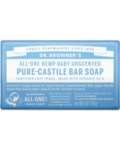 Scented with pure lavender and lavandin oils to calm the mind and soothe the body! Dr. Bronner's Lavender Bar Soap is made with certified fair trade ingredients and organic hemp oil for a soft, smooth lather that won't dry your skin. 100% biodegradable in a 100% post-consumer recycled wrapper.
