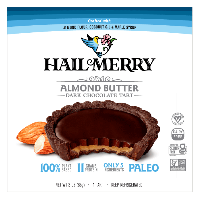 Hail Merry's luscious tarts are made fresh with virgin coconut oil and good fats from nuts, and are perfectly sized for sharing or stashing away all for yourself. Creamy almond butter and rich dark chocolate ganache melt together in sweet and salty perfection.